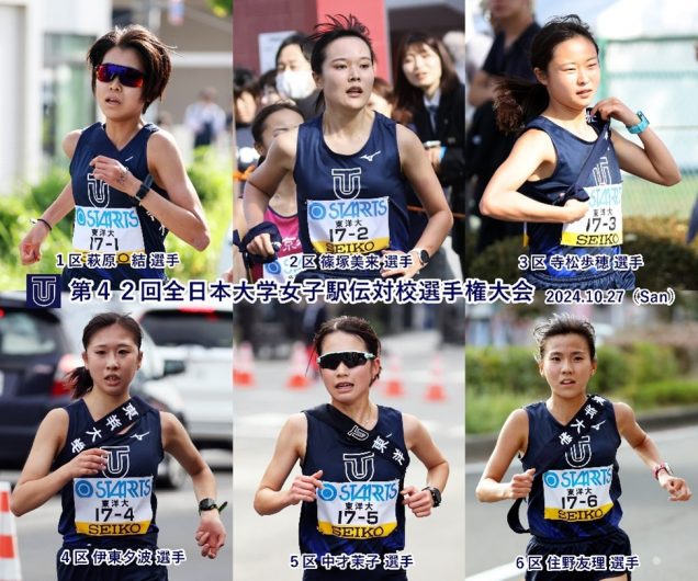 10月4日(土)開催の、第31回関東大学女子駅伝では、総合第12位という結果で、地区出場枠での本大会出場権を逃しました。本大会は、地区出場枠以外に5000m6人の合計タイムの上位3校に出場権が与えらます。その結果、タイム枠で東洋大学は1位となり本大会に出場します。シード権獲得を目指して、選手が「杜の都仙台」を疾走します。皆さん、東洋大学女子駅伝部を応援しましょう!
