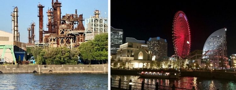 午後4時30分、川崎日航ホテル前に集合し、バスで川崎港に向かい午後5時に出航、川崎の工場夜景を眺めながら横浜港に向かいます。