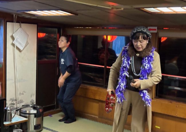 カラオケタイムでは、「古城」「怪傑ハリマオ」「流れ雲」「雨の御堂筋」「銀座の恋の物語」「北の漁場」など、古き懐かしい曲の数々に加え、ビートルズの「レットイットビー」まで、賑やかに大盛り上がりでした。