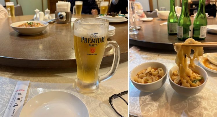 チャーハン、刀削麺、カシューナッツと鶏肉炒め、ザーサイ、エビチリなどを美味しくいただきました。