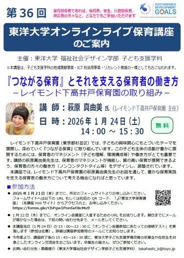 第36回東洋大学オンラインライブ保育講座のご案内(無料)