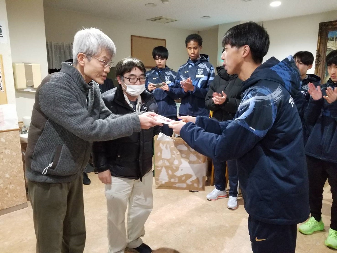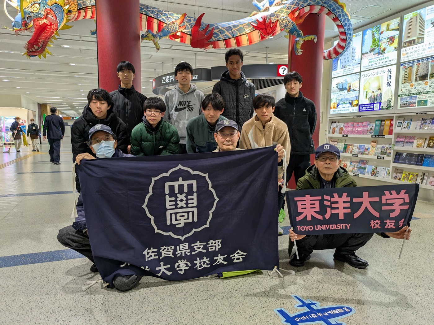 校友会長崎県支部、甫水会佐賀県支部と一緒に激励会を開催し、激励の言葉と激励品を贈りました。