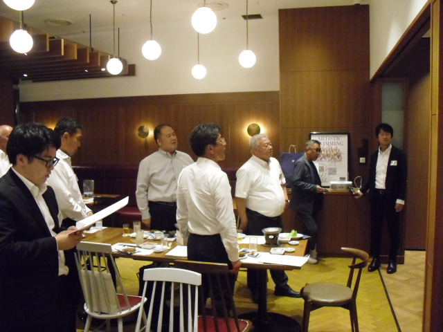 集合写真を撮影後、懇親会に移り松本相談役の乾杯で楽しい懇親会が始まりました。
