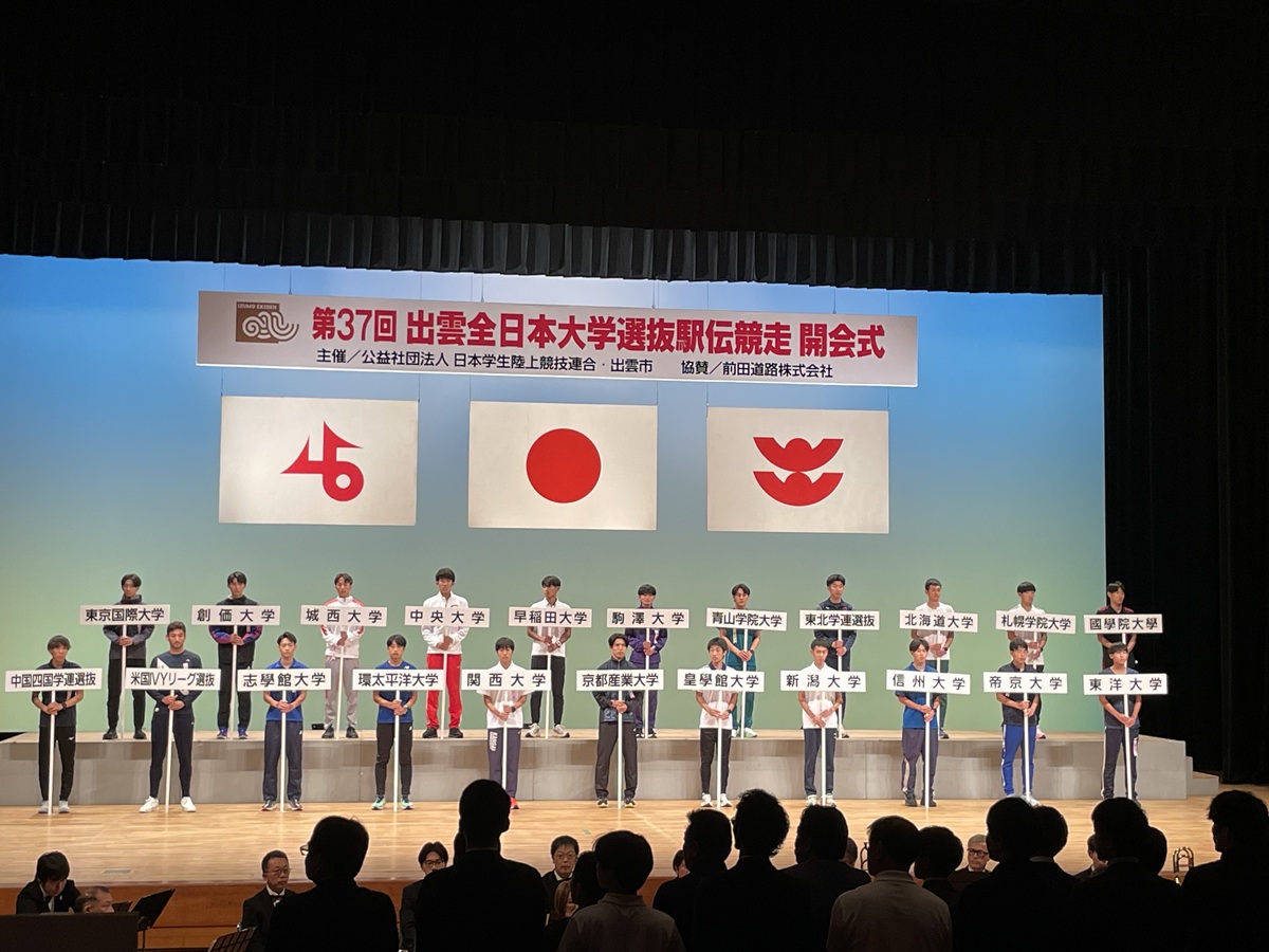 第37回 出雲駅伝スナップ 2025.10.15 第37回出雲全日本大学選抜駅伝競走 2025年10月13日(月・祝)「スポーツの日」 開会式① 開会式② スタート地点応援 応援前通過(1区松井くん) ゴール地点応援 記念撮影 閉会式後記念撮影 さよならパーティーパフォーマンス