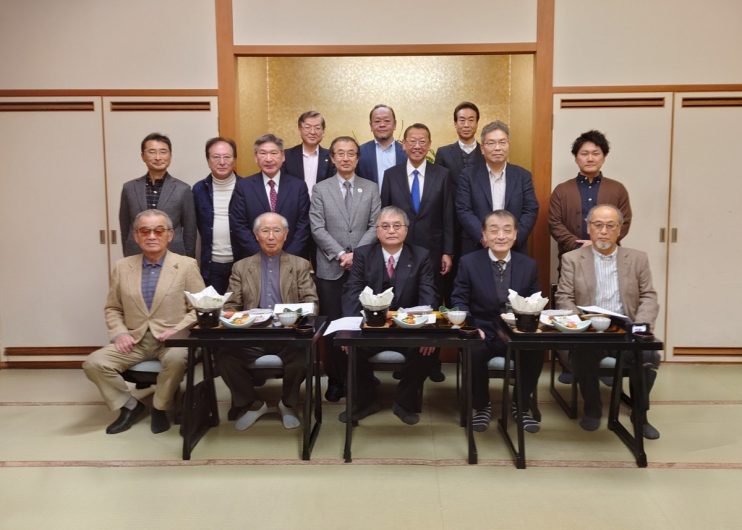 今年は、初参加の方や20年ぶり参加の方も含めて15名の校友が集い、半澤支部長より挨拶をいただき、支部長がライフワークとして研究している学祖井上圓了先生の山形県内における巡講の記録を文書としてお渡ししてから、今回初参加の平成28年卒の山口さんの乾杯で新年賀詞交歓会を開会いたしました。
